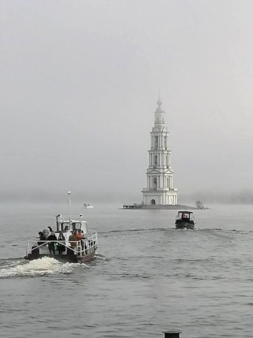 Паломники на катерах отправились к знаменитой колокольне Николаевского собора — символу стойкости веры, уцелевшему после затопления города. Затем посетили Монастырский остров, где ведутся работы по восстановлению Троицкого Макарьева монастыря, и приложились к святыням в местной часовне. Завершился визит в Калязин молитвой у мощей преподобного Макария Калязинского в Вознесенском храме.
