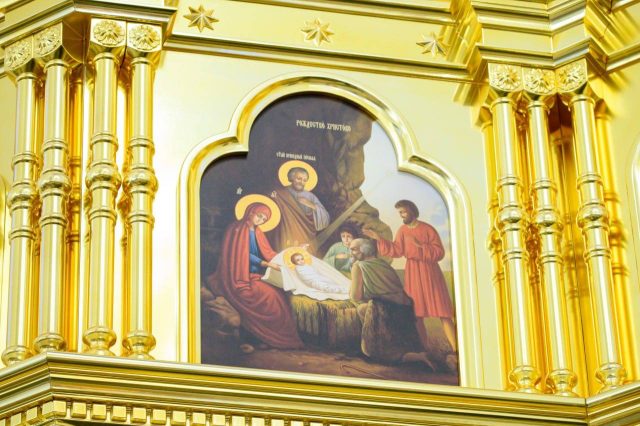 После заамвонной молитвы было совершено соборное славление перед иконой Рождества Христова.