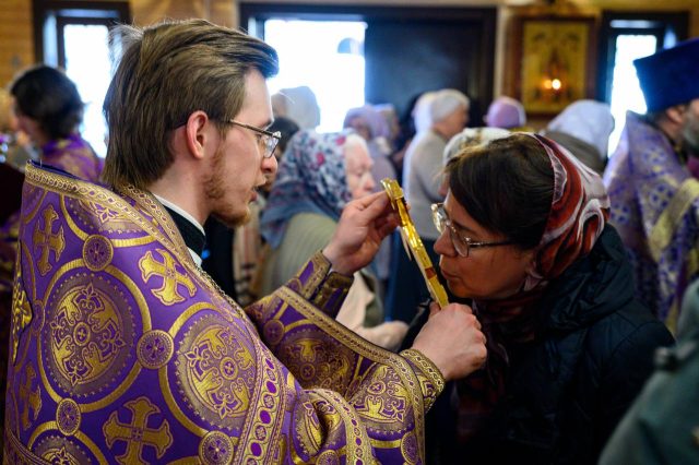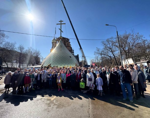 Освящение и последующее водружение креста на купол храма в честь иконы Божией Матери «Отрада и Утешение»